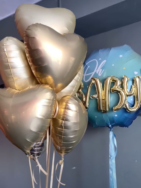 5 шт. фольгированных сердец на атласных лентах 45 см.