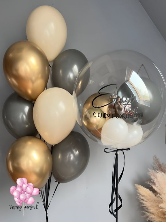 1 шт. шар баблс с наполнением шарики, индивидуальная надпись 70 см.