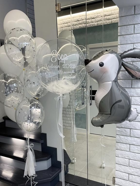 1 шт.шар баблс с метрикой и наполнением 70 см.