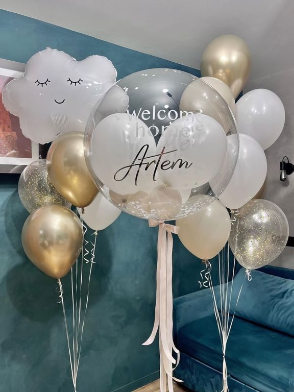 1 шт. шар баблс с индивидуальной надписью и наполнением, ленты 70 см.