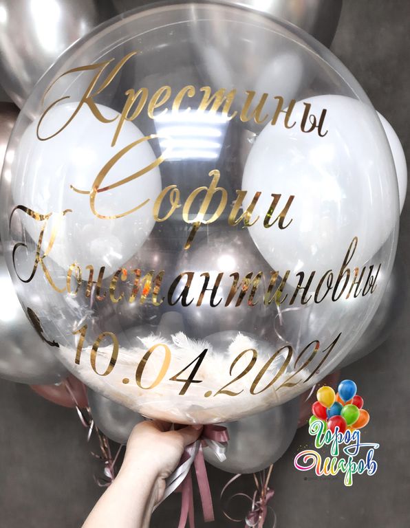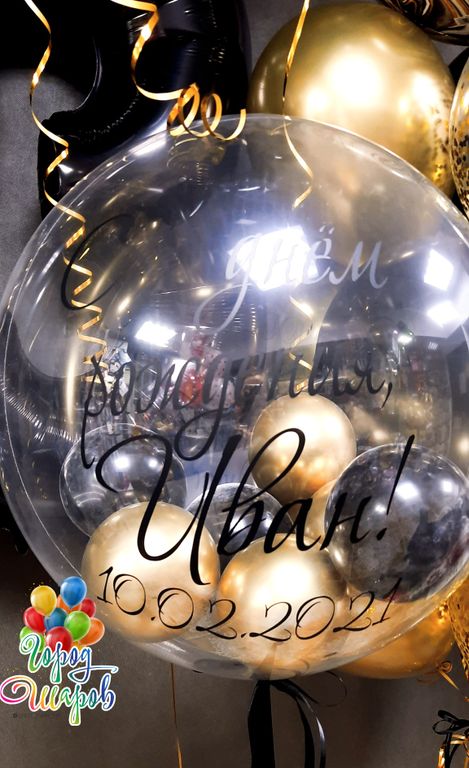 В параметрах укажите нужный размер шарика и цвет конфетти, желаемую надпись.