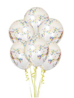 Яркие россыпи конфетти на прозрачных бесцветных шарах, станут прекрасным дополнением к комплекту.