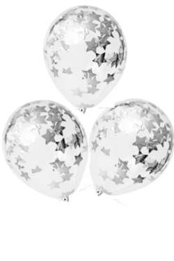 Яркие россыпи конфетти на прозрачных бесцветных шарах, станут прекрасным дополнением к комплекту.
