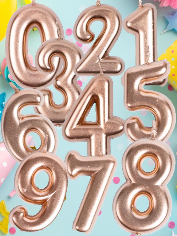 Декоративное украшение стола. Свеча в форме цифры, цвета розовое золото. Отличное решение для декорирования торта, десерта ко дню рождения или юбилею. Экологически чистый состав, оригинальный дизайн. Высота свечи 4,5 см.