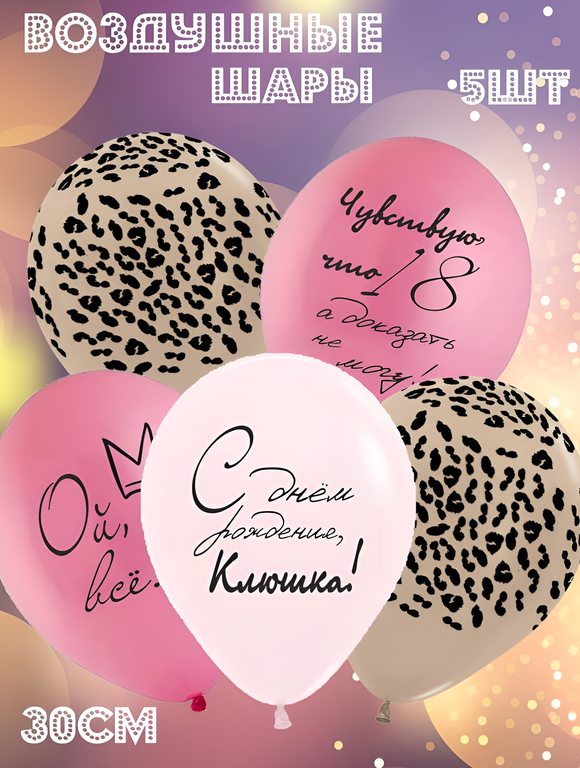 Воздушные шарики из латекса с рисунком 9, 5 штук
