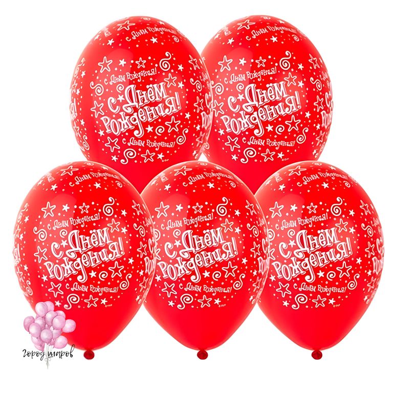 Б Воздушные шарики из латекса с рисунком С Д/Р, цвет красный, 1 шт.